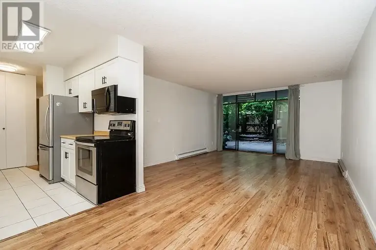924 Sq Ft Ground Level with a massive 435 Sq Ft Patio right beside Patterson Skytrain Station! Featuring a 2 bedroom unit with laminate flooring through out. Across the street from Central Park, steps to Kingsway and walking distance to Metrotown Mall. Hot water included in the rent. 1 parking stall & storage locker included, second stall can be rented for $50 per month. Pets are allowed! Minimum 6 month lease. Laundry is shared in the common laundry room. Available to move in any time! (id:61160)