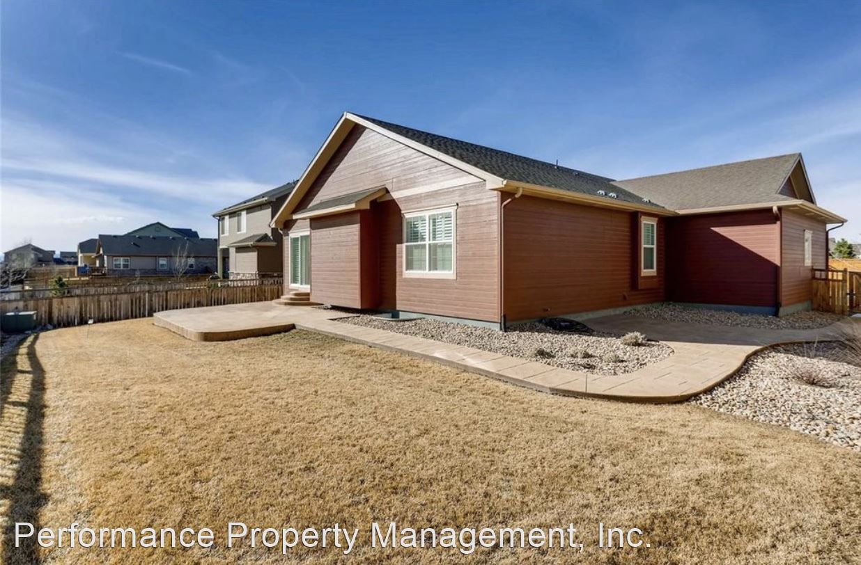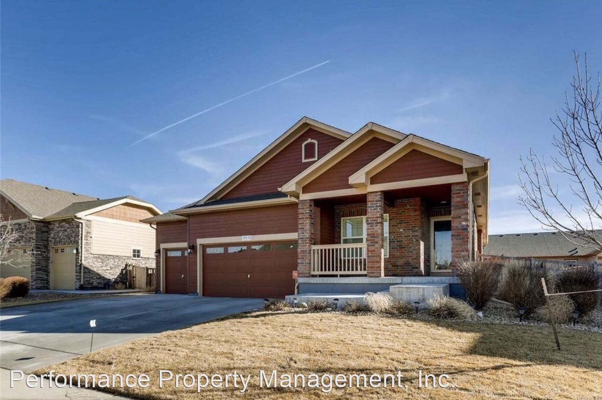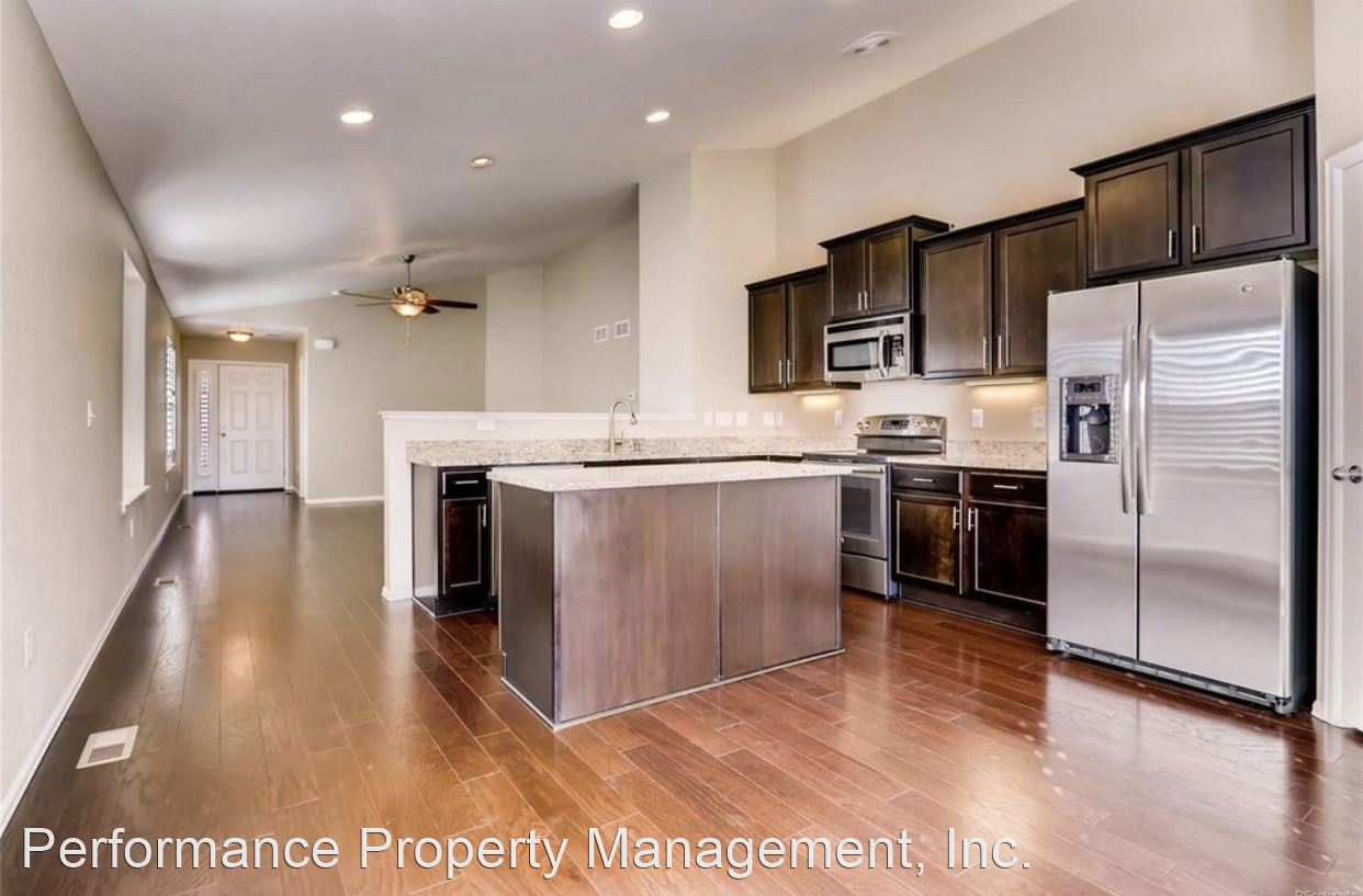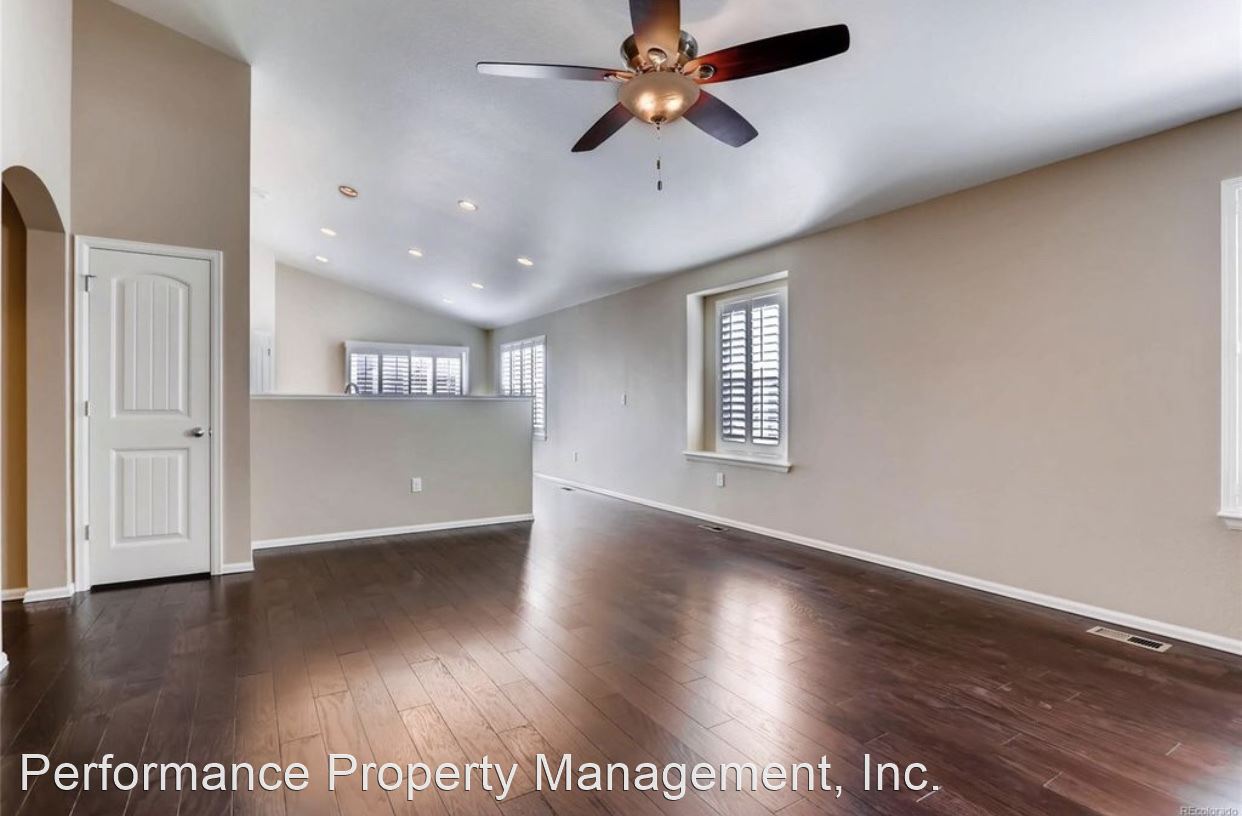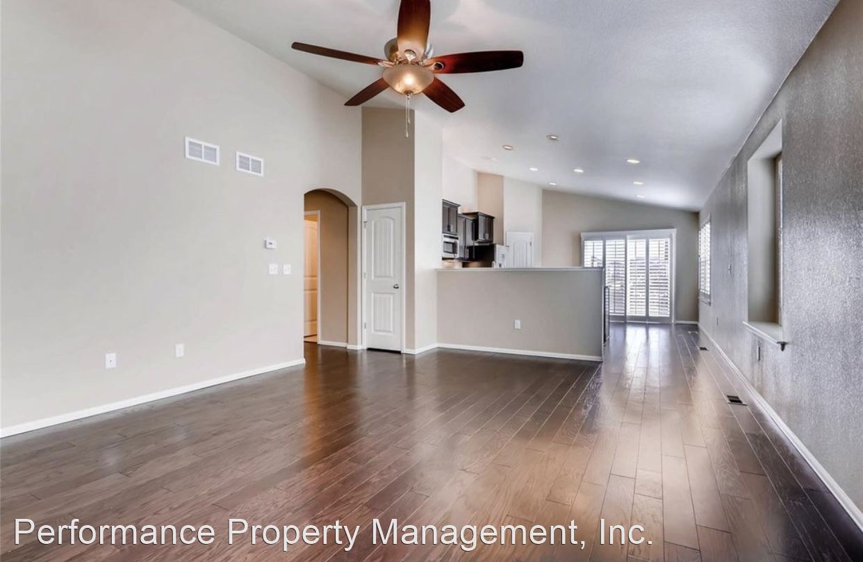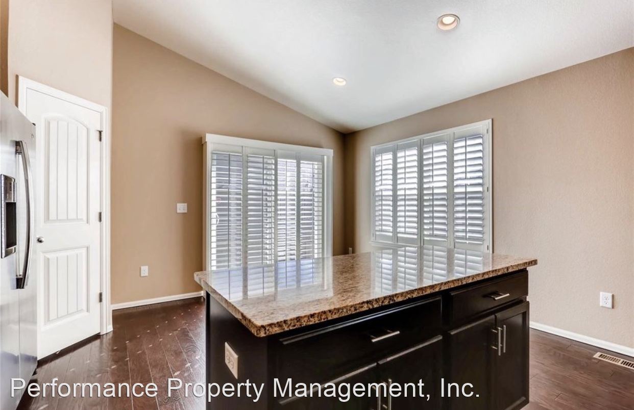 GORGEOUS Ranch Style Home in PRESTIGIOUS High Point At DIA Community AVAILABLE AUGUST 5TH!!!! - This BEAUTIFUL home features an open floor plan with VAULTED CEILINGS, HARDWOOD FLOORS, plantation window shutters and a FULLY UPGRADED KITCHEN with granite counter tops, large island, stainless steel appliances and walk-in pantry. The partially finished basement features one bedroom, full bathroom, recreation room, game room and TONS of space for storage in the unfinished portion of the basement. COMMUNITY POOL and PARK are just outside your door!! THREE CAR GARAGE perfect for parking all of your outdoor toys. Located right by the GAYLORD ROCKIES RESORT AND CONVENTION CENTER and LESS THAN 10 MINUTES TO DIA!!! Tenant responsible for gas, electric, water, sewer and yard maintenance in addition to rent. NO PETS. NO SMOKING. This is a QUIET and VERY WELL MAINTAINED HOA community.